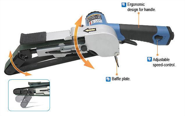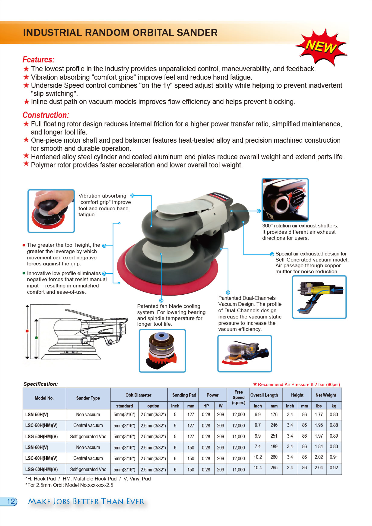The pad shroud; Direct Path vacuum generator; easy empty cloth bag and the extra flexible air supply and vacuum hose combination provide a superior vacuum system at minimum cost. Grip options are available.